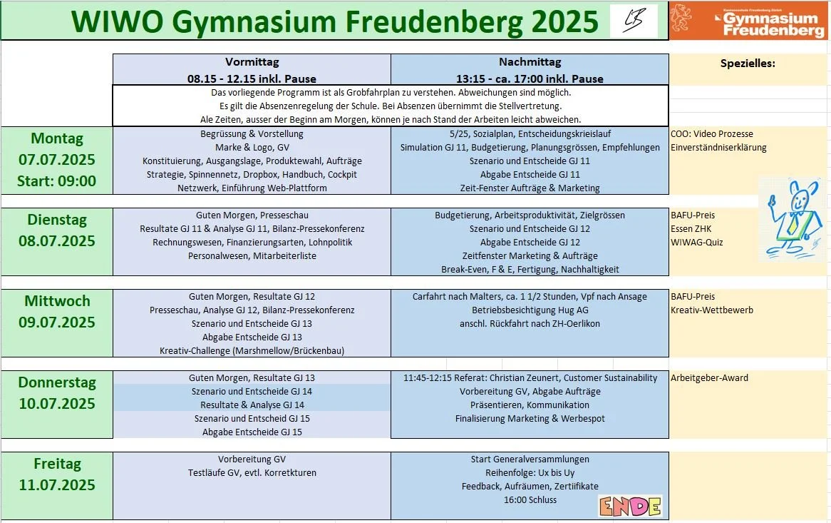 Wochenprogramm Gym Freudenberg 2025 (Update vom 09.06.2025)
